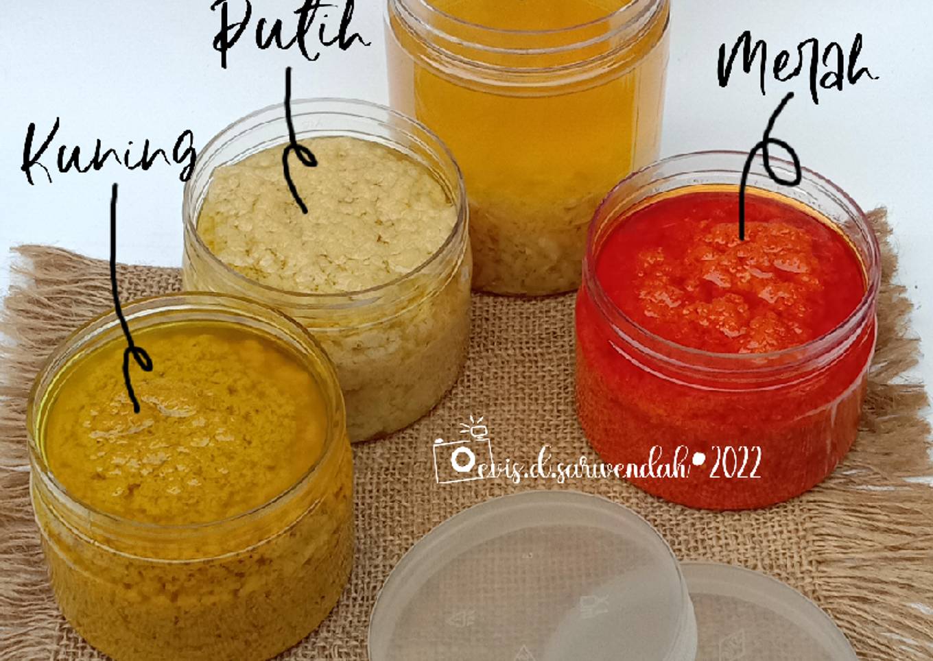 Nah, sehari-hari aku memang selalu sedia bumbu dasar putih dan kuning lho di kulkas. Secara penghuni rumah yang suka pedes cuma aku, jadi buat bumbu dasar merah itu cuma sekali aja, yaitu tahun lalu. 🤣🙈