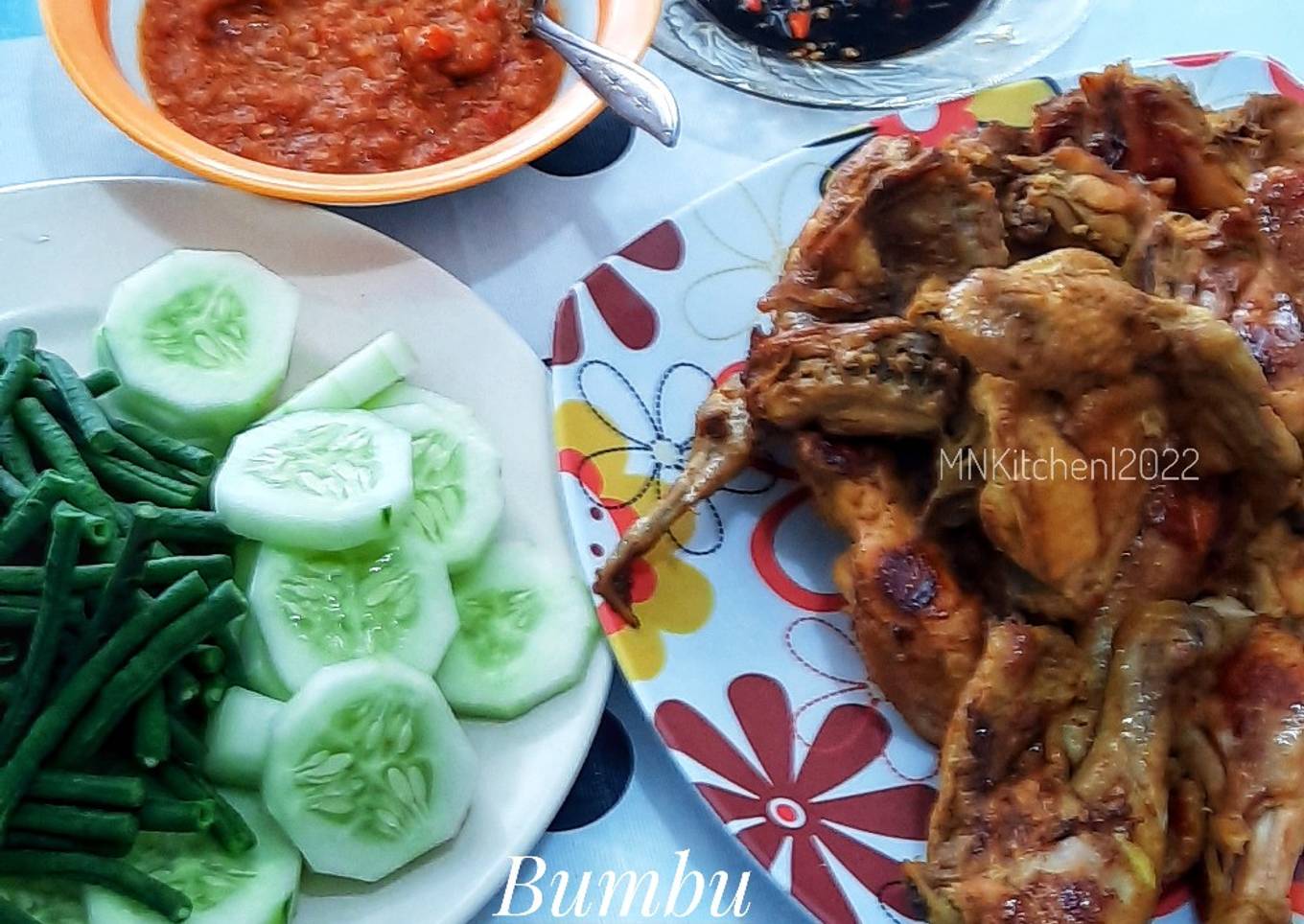 - Angkat ayam lalu tiriskan. Bakar ayam,siap disajikan dngn lalapan dan sambel.