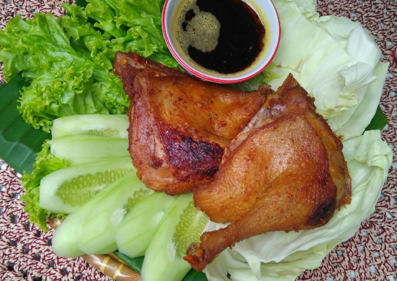 - Setelah bumbu menghitam, matikan api. Sajikan bersama bebek goreng dan lalapan.