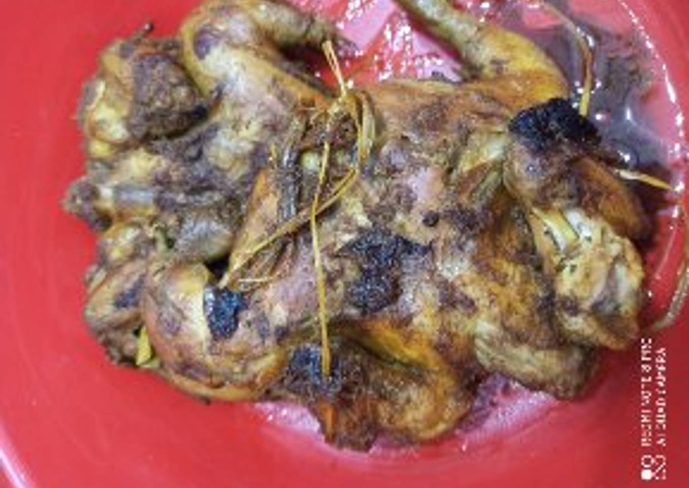 - Tuangkan air sampai ayam terendam air. Masak dengan api sedang. Periksa ayam beberpa saat, sambil di bulak balik. Agar ayam matang merata. Jika air sudah setengah menyusut, cek apakah sudah mulai lembut ayamnya. Me: dua kali menuangkan air. Tp air yg ke dua tdk sampai terendam. Dan masak dengan api keci sampai air menyusut sisa 1/4 nya. Lalu diamkan hingga dingin. Ayam bumbu bakar siap di bakar. Me bakar pakai arang batok kelapa. Lebih wangi hasilnya. Dan jangan dibakar terlalu lama.