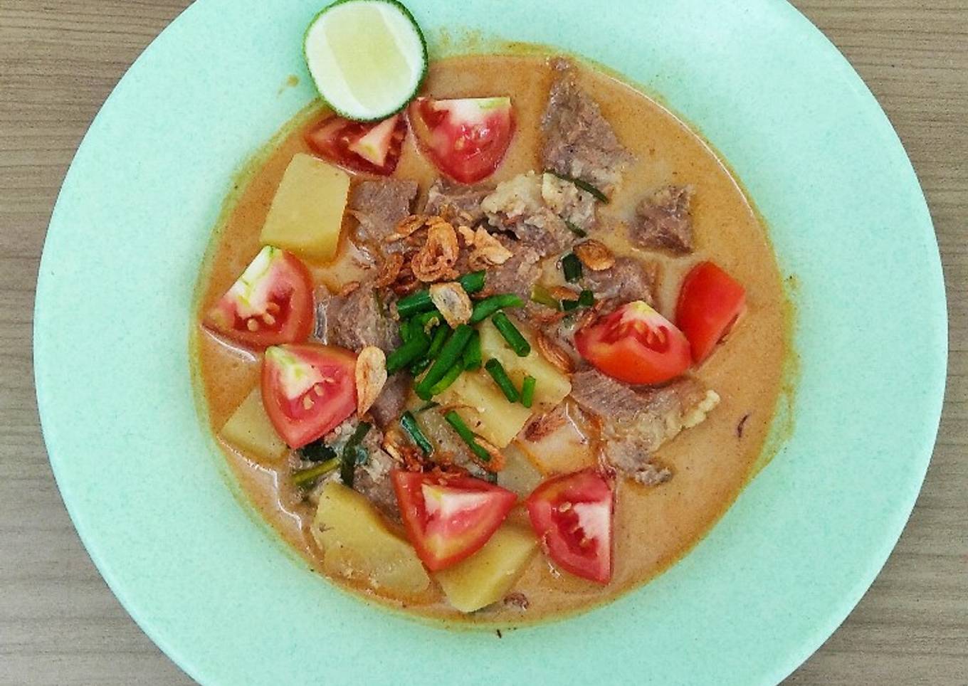 - Sajikan soto betawi dengan irisan daun bawang, tomat, kentang rebus dan bawang goreng serta perasan jeruk nipis