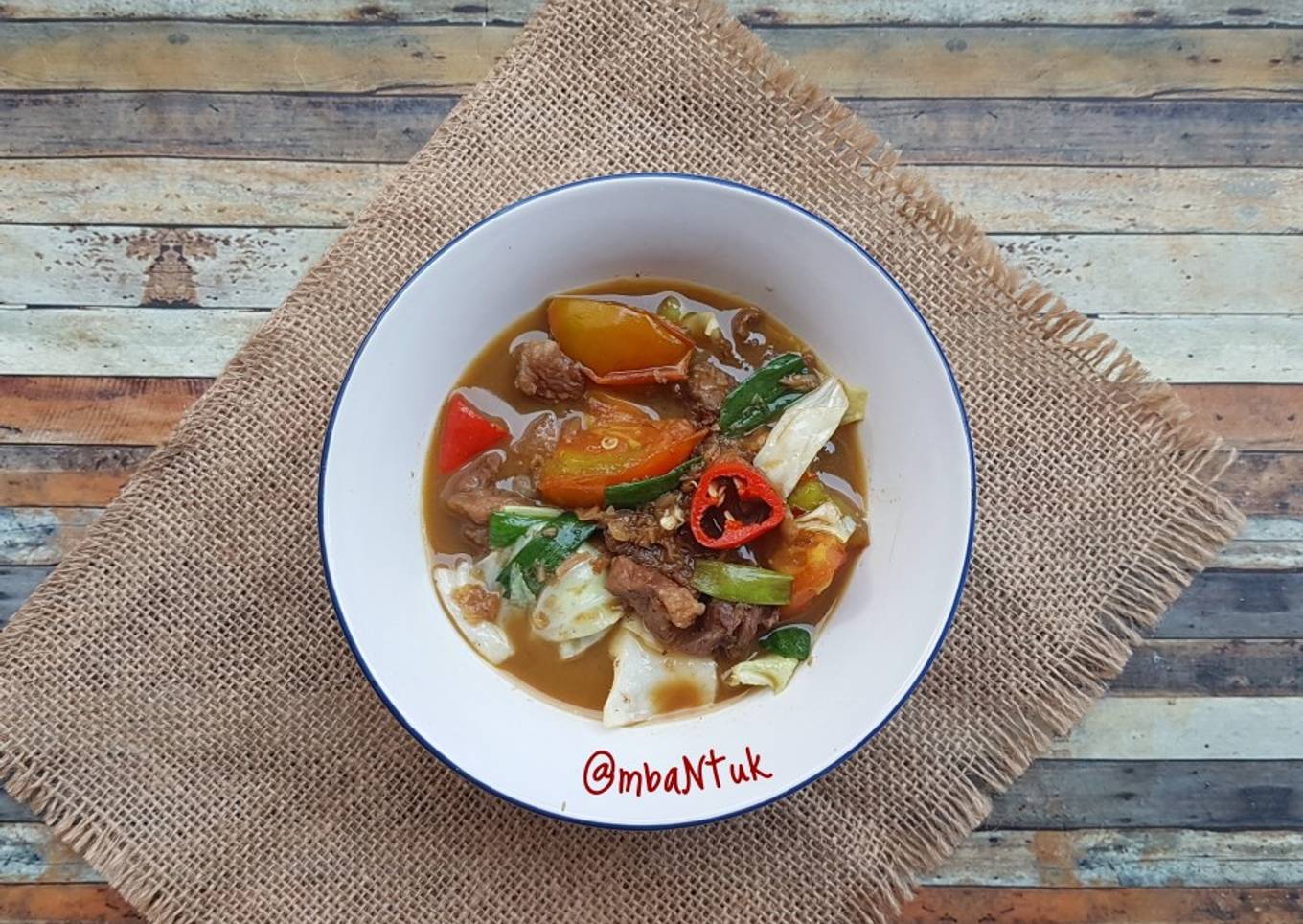 - Tumis daging sampai berubah warna. Tambahkan kecap. Tumis lagi sampai daging empuk.