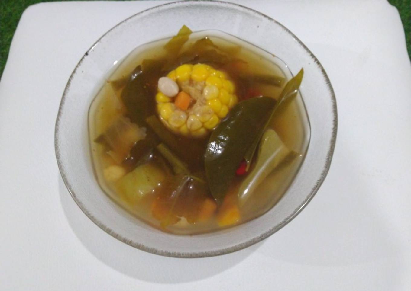 - Cuci sayuran, masukan dulu jagung dan labu setelah matang, masukan wortel, kacang panjang, kol, bawang putih, terakhir masukan daun melinjo