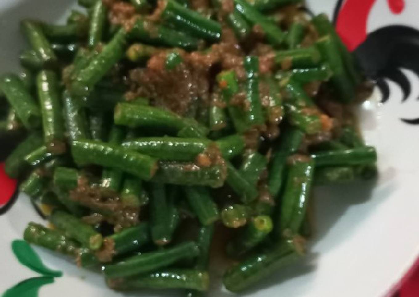 - Masukkan kacang panjang, garam dan gula, test rasa, masak sampai kacang panjang matang