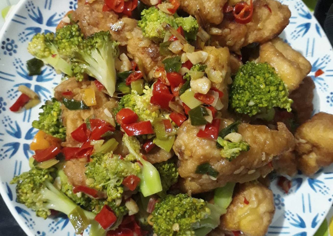 Cara untuk membuat Brokoli ayam tahu bumbu cabe garam