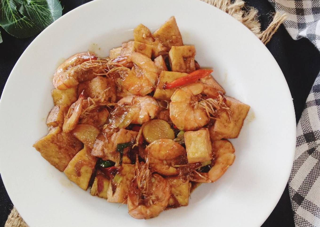 - Tumis bumbu iris hingga harum. Masukan udang dan tahu. Aduk2 tambahkan garam,kaldu bubuk,lada,beri air scukupnya.