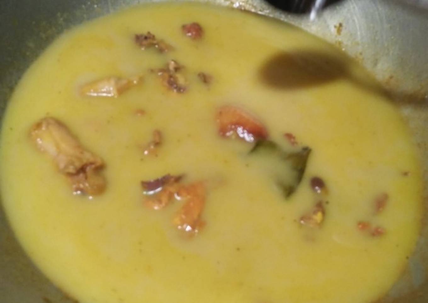 - Bikin santan dr ¼ kelapa tua,lalu masukkan santan 250 ml smp ayam tercelup semua, masukkan garam tes rasa