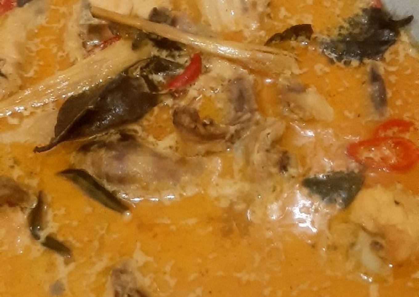 - Aduk aduk santan agar tidak pecah...biarkan ayam tercampur santannya sampai air agak menyusut dan mengental sedikit...tambahkan garam secukup nya