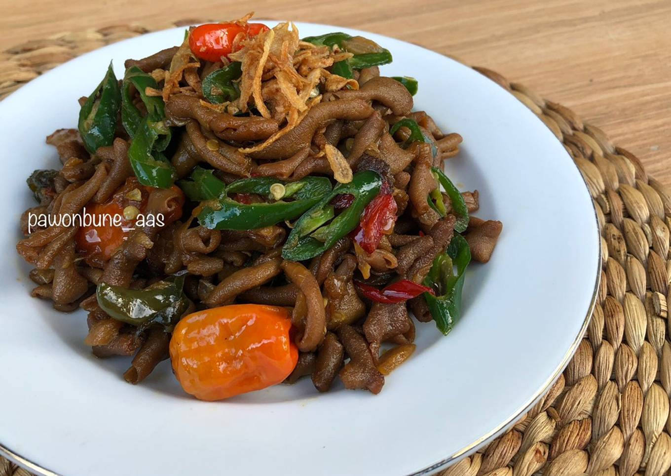 Masukkan usus, masak hingga kuah menyusut.