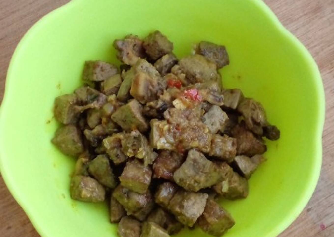 - Cuci bersih hati sapi. Rebus setengah matang. Potong dadu kemudiahoreng setengah matang.